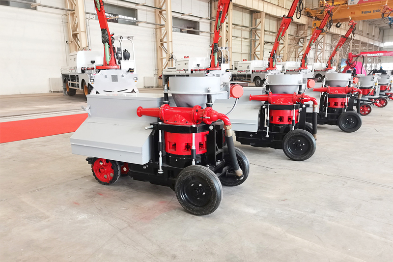 HBT-12D型泵送式濕噴機,是我公司結合混凝土泵送式輸送和稀薄流輸送的優點,研制開發的液壓泵送式濕噴機系列產品之一。該機采用液壓傳動,以泵送方式將砼輸送至一定距離 或至噴頭處,再用壓縮空氣將砼噴射到支護面上。同時,在噴頭處加入適量速凝劑與砼混合,速凝劑的添加量通過計量泵調節。采用三泵結構,換向速度快,脈沖···