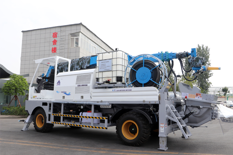 該機配備速凝劑抽吸裝置,可以快速將施工工地零散的液態速凝劑抽吸至車載速凝劑桶中,使用方便